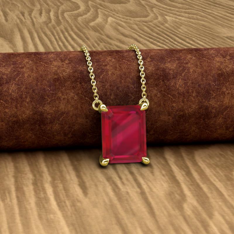 2.07 ct Created Ruby Emerald Shape (8x6 mm) Women Solitaire Pendant Necklace 14K Yellow Gold. Included 16 Inches 14K Yellow Gold Chain. More Details ...