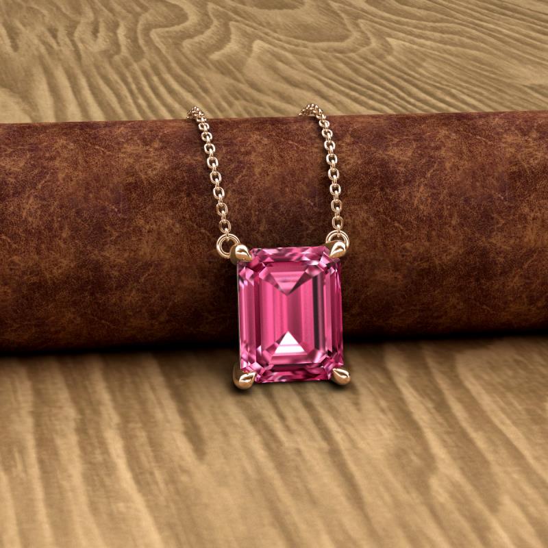 1.65 ct Pink Tourmaline Emerald Shape (8x6 mm) Women Solitaire Pendant Necklace 14K Rose Gold. Included 16 Inches 14K Rose Gold Chain. More Details ...