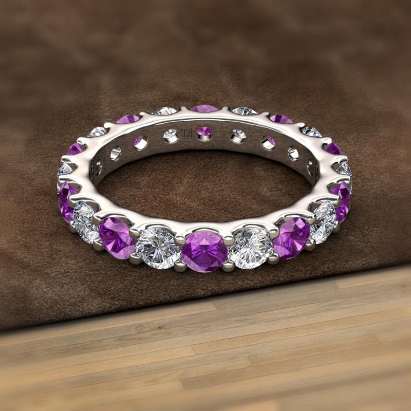 Amethyst and Lab Grown Diamond 3.42 ctw* U-Prong Womens Eternity Ring Stackable Sterling Silver More Details ...