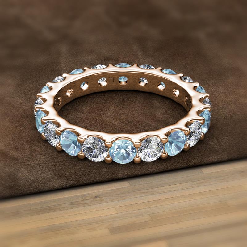 Aquamarine and Diamond 3.42 ctw* U-Prong Womens Eternity Ring Stackable 10K Rose Gold More Details ...
