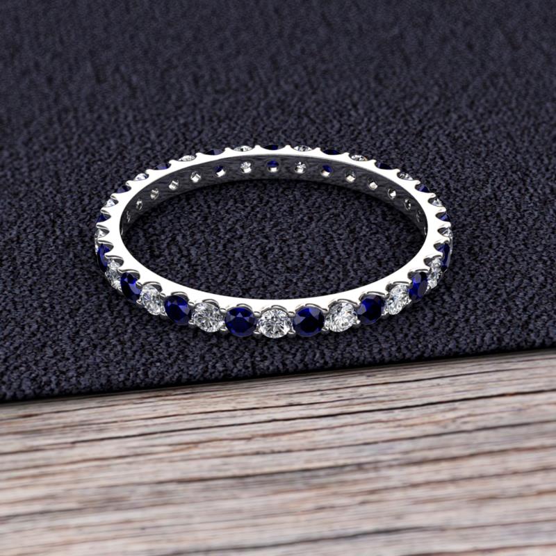 Blue Sapphire and Diamond 0.86 ctw* U-Prong Womens Eternity Ring Stackable 10K White Gold More Details ...