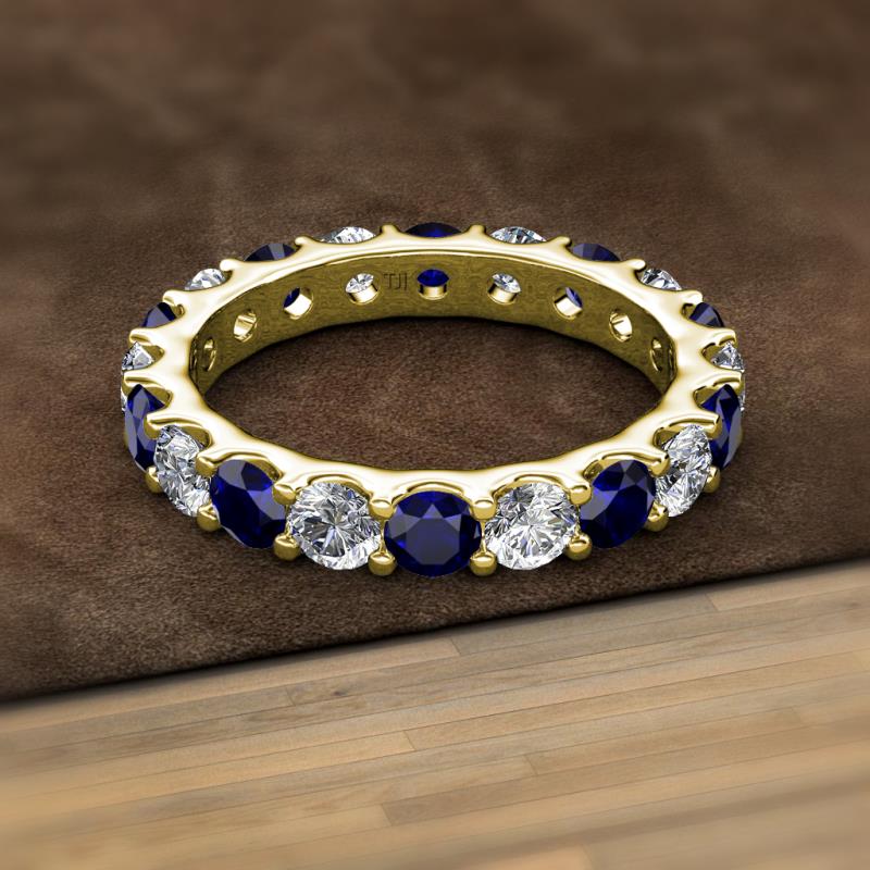 Blue Sapphire and Lab Grown Diamond 3.69 ctw* U-Prong Womens Eternity Ring Stackable 14K Yellow Gold More Details ...