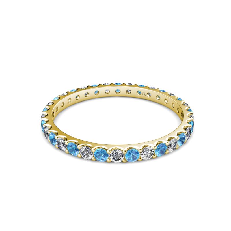 Blue Topaz and Diamond 0.77 ctw* U-Prong Womens Eternity Ring Stackable 14K Yellow Gold More Details ...