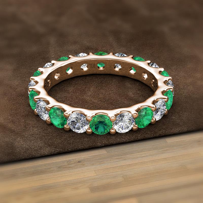 Emerald and Diamond 3.42 ctw* U-Prong Womens Eternity Ring Stackable 10K Rose Gold More Details ...