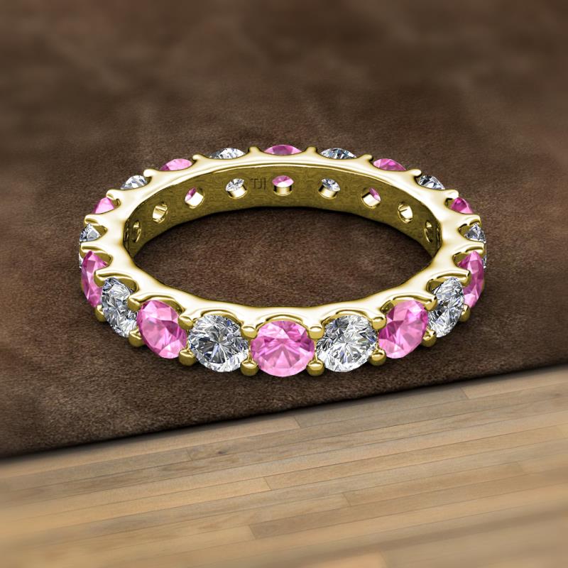 Pink Sapphire and Lab Grown Diamond 3.69 ctw* U-Prong Womens Eternity Ring Stackable 10K Yellow Gold More Details ...