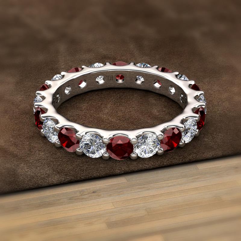 Red Garnet and Diamond 3.88 ctw* U-Prong Womens Eternity Ring Stackable 10K White Gold More Details ...