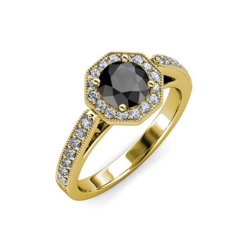Black and White Diamond Milgrain Womens Halo Engagement Ring 1.23 ctw 18K Yellow Gold More Details ...
