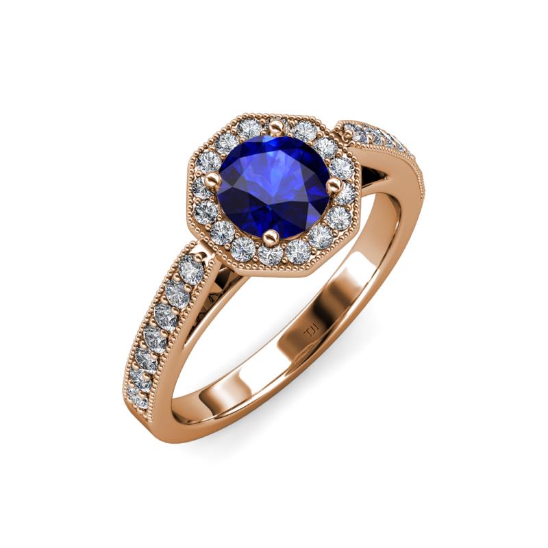 Sapphire and Diamond Milgrain Womens Halo Engagement Ring 1.03 ctw 18K Rose Gold More Details ...