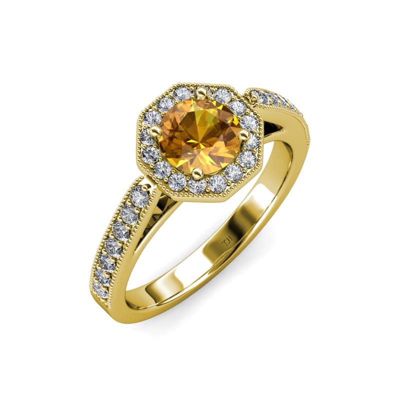 Citrine and Diamond Milgrain Womens Halo Engagement Ring 1.00 ctw 18K Yellow Gold More Details ...