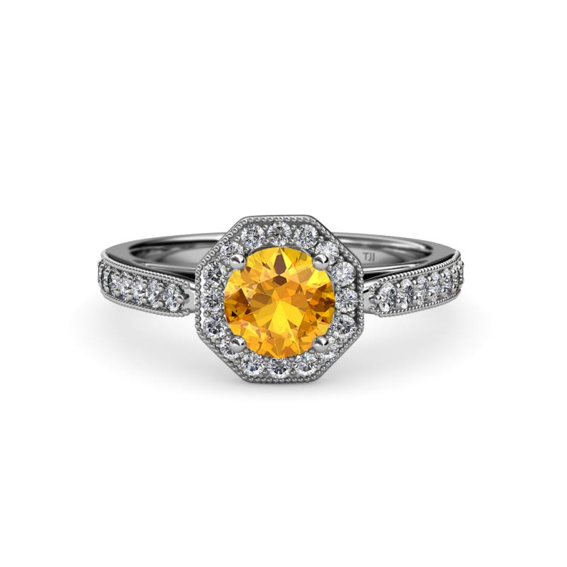 Let this enchanting Engagement Ring put your Love into words with Octagon Halo Frame of Diamonds bringing life to the Center Citrine enhancing its beauty with milgrain work on the edges.