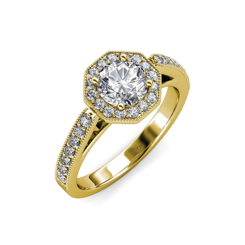 Diamond Womens Halo Engagement Ring with Milgrain Work 1.05 ctw 14K Yellow Gold More Details ...