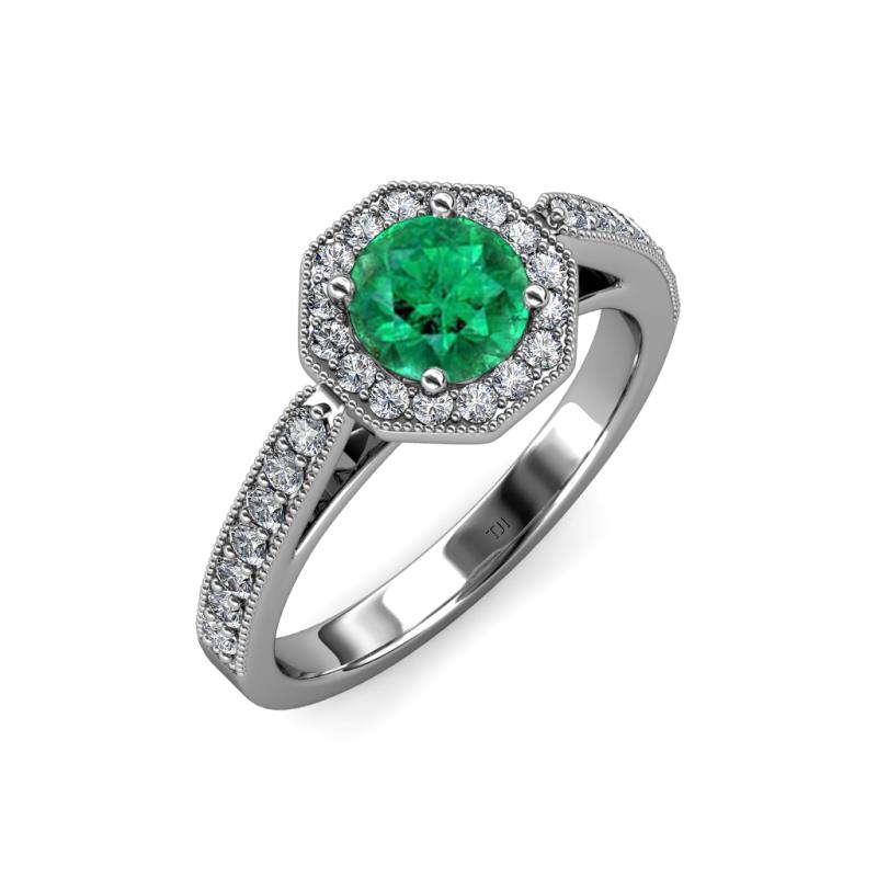 Emerald and Diamond Milgrain Womens Halo Engagement Ring 1.00 ctw 18K White Gold More Details ...