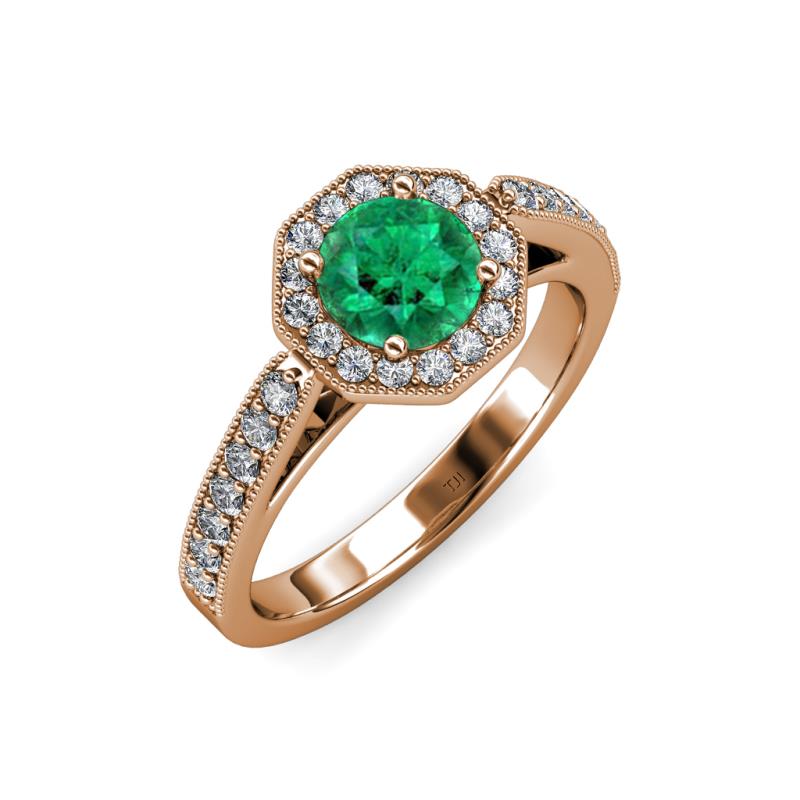 Emerald and Diamond Womens Halo Engagement Ring with Milgrain Work 1.00 ctw 18K Rose Gold More Details ...
