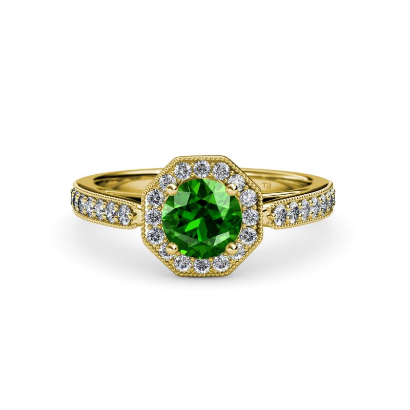 Green Garnet Diamond (VS2-SI1, F-G) Halo Engagement Ring with Milgrain Work 1.10 ct tw in 18K Yellow Gold. More Details ...