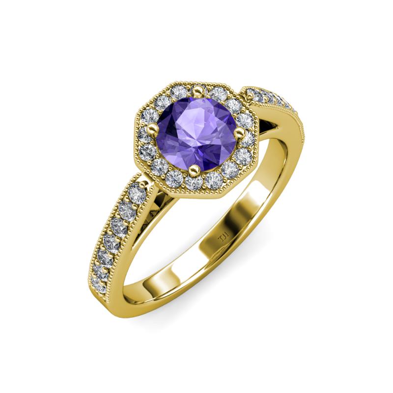 Iolite and Diamond Milgrain Womens Halo Engagement Ring 1.00 ctw 18K Yellow Gold More Details ...