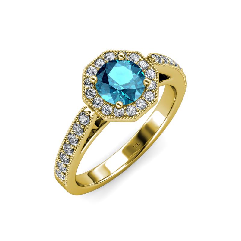 London Topaz and Diamond Milgrain Womens Halo Engagement Ring 1.10 ctw 14K Yellow Gold More Details ...