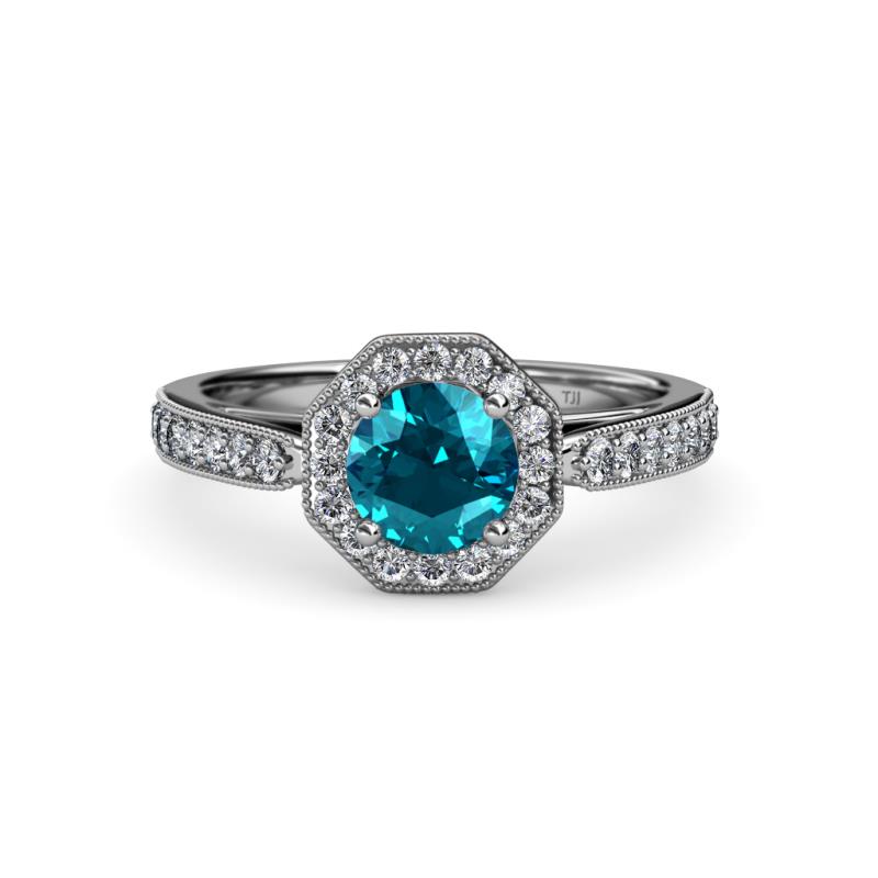 London Blue Topaz Diamond (SI2-I1, G-H) Halo Engagement Ring with Milgrain Work 1.10 ct tw in Palladium. More Details ...