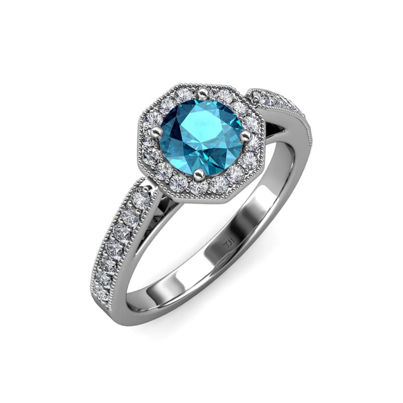 Let this enchanting Engagement Ring put your Love into words with Octagon Halo Frame of Diamonds bringing life to the Center London Blue Topaz enhancing its beauty with milgrain work on the edges.