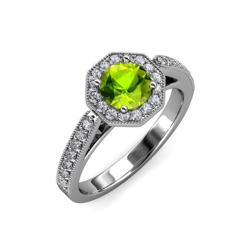 Peridot and Diamond Milgrain Womens Halo Engagement Ring 1.05 ctw 14K White Gold More Details ...