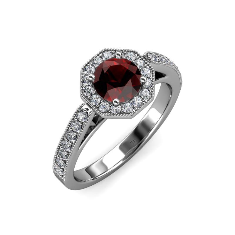Red Garnet and Diamond Milgrain Womens Halo Engagement Ring 1.07 ctw 14K White Gold More Details ...
