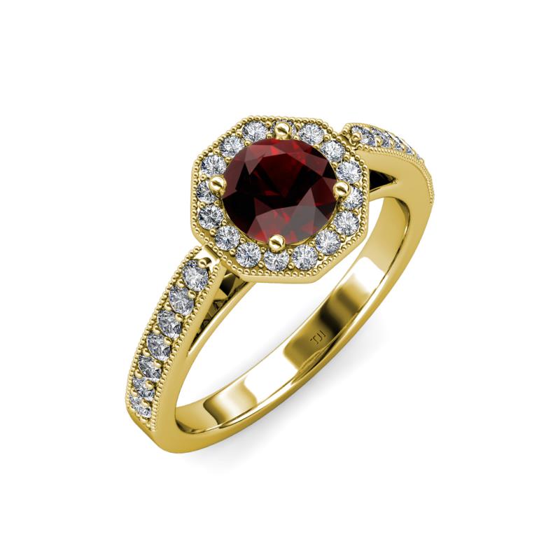 Red Garnet and Diamond Milgrain Womens Halo Engagement Ring 1.07 ctw 14K Yellow Gold More Details ...