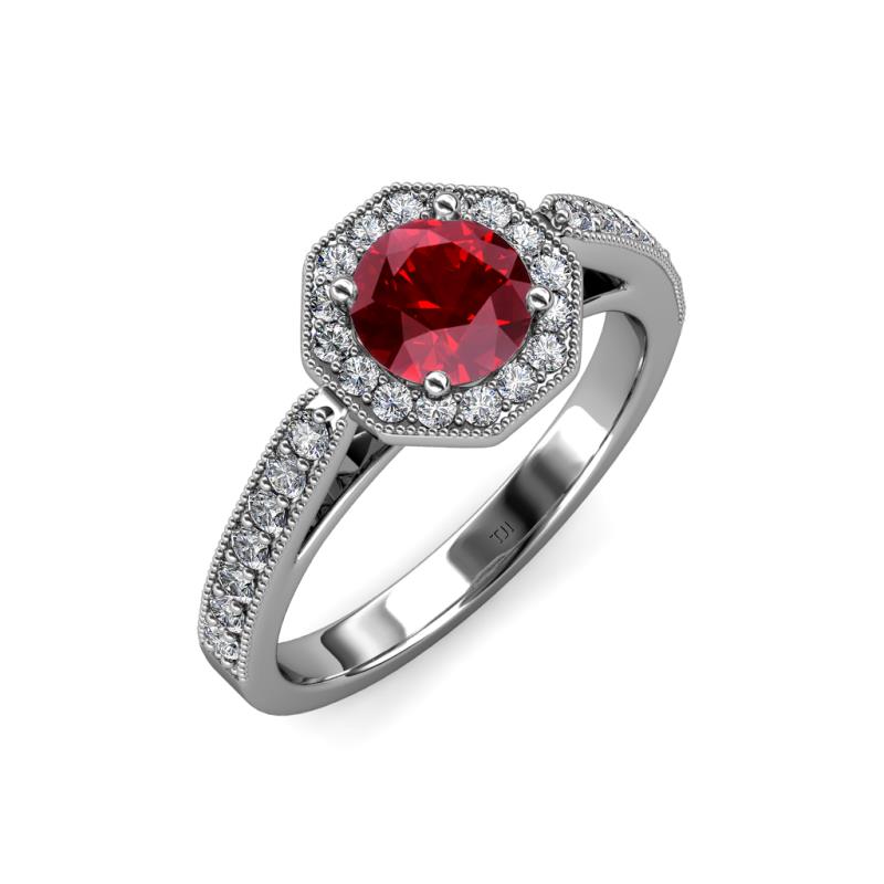 Ruby and Diamond Womens Halo Engagement Ring with Milgrain Work 1.03 ctw 14K White Gold More Details ...