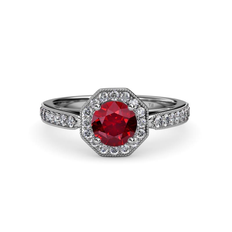 Let this enchanting Engagement Ring put your Love into words with Octagon Halo Frame of Diamonds bringing life to the Center Ruby enhancing its beauty with milgrain work on the edges.
