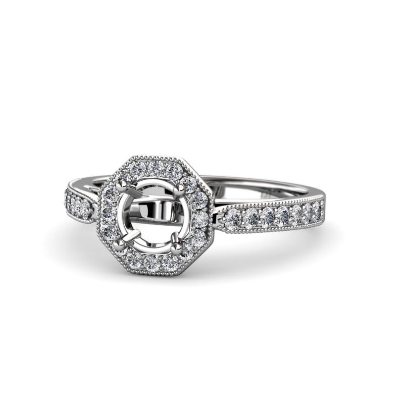 Let this enchanting Semi Mount Engagement Ring put your Love into words with Octagon Halo Frame of Diamonds enhancing its beauty with milgrain work on the edges.