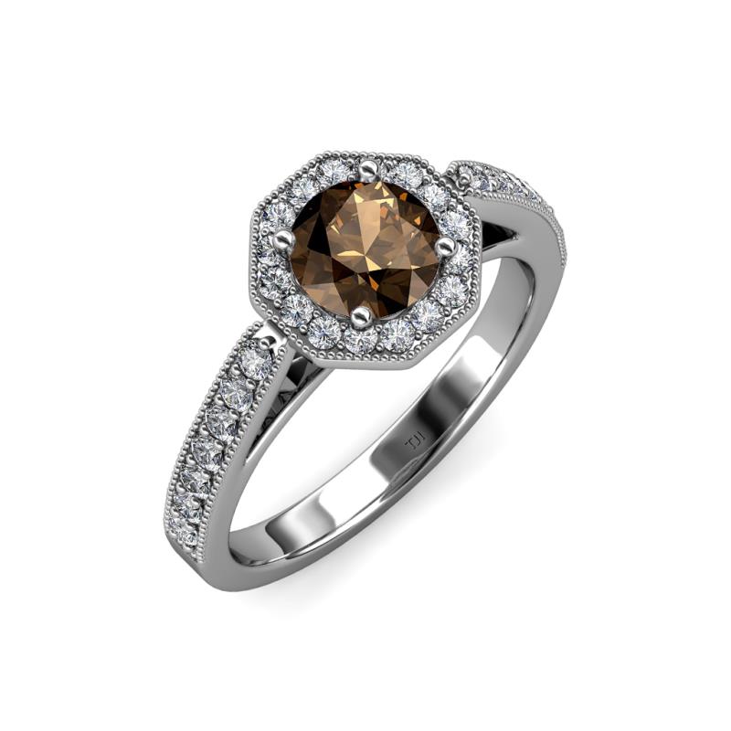 Smoky Quartz and Diamond Milgrain Womens Halo Engagement Ring 1.00 ctw 14K White Gold More Details ...
