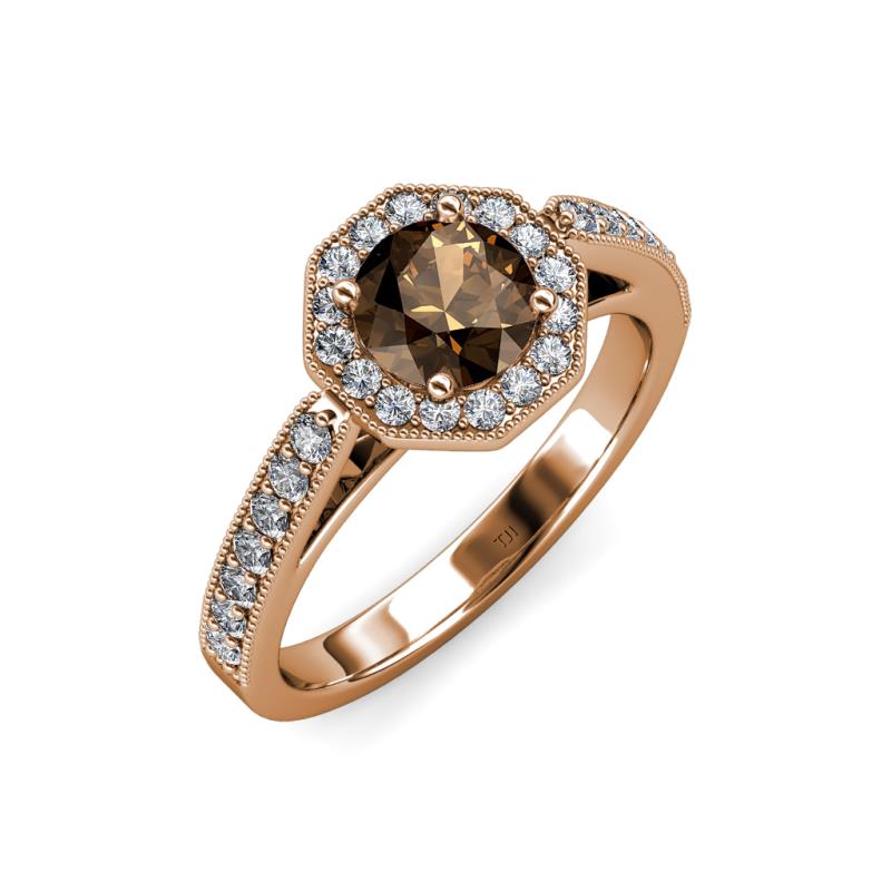 Smoky Quartz and Diamond Milgrain Womens Halo Engagement Ring 1.00 ctw 14K Rose Gold More Details ...