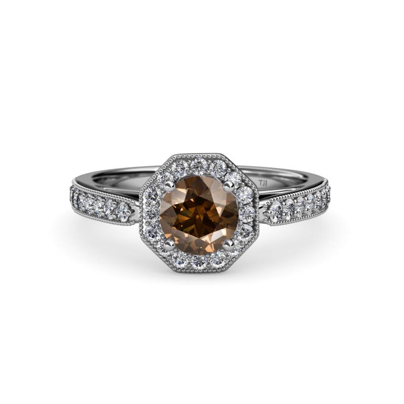 Smoky Quartz Diamond (SI2-I1, G-H) Halo Engagement Ring with Milgrain Work 1.00 ct tw in Palladium. More Details ...