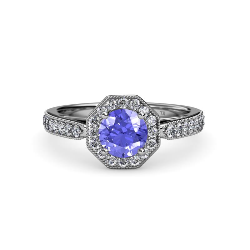 Let this enchanting Engagement Ring put your Love into words with Octagon Halo Frame of Diamonds bringing life to the Center Tanzanite enhancing its beauty with milgrain work on the edges.