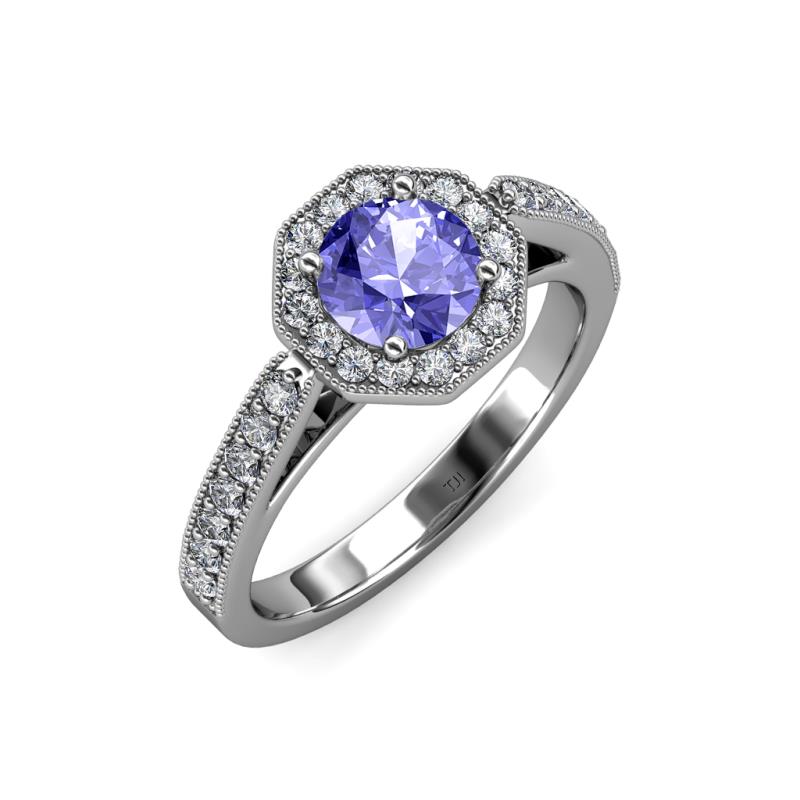 Let this enchanting Engagement Ring put your Love into words with Octagon Halo Frame of Diamonds bringing life to the Center Tanzanite enhancing its beauty with milgrain work on the edges.