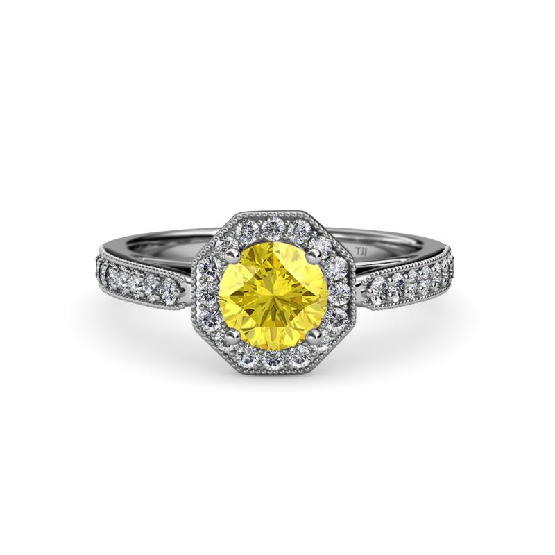 Let this enchanting Engagement Ring put your Love into words with Octagon Halo Frame of Diamonds bringing life to the Center Yellow Sapphire enhancing its beauty with milgrain work on the edges.