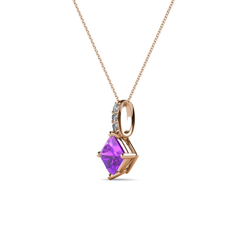 Princes Cut (5.5 mm) Amethyst and Diamond Womens Pendant Necklace 0.90 ctw 10K Rose Gold.Included 18 Inches 10K Rose Gold Chain More Details ...