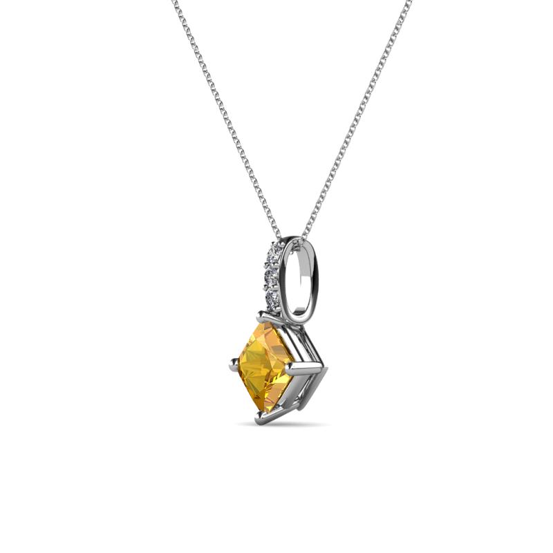 Princes Cut (5.5 mm) Citrine and Diamond Womens Pendant Necklace 0.90 ctw 14K White Gold.Included 18 Inches 14K White Gold Chain More Details ...