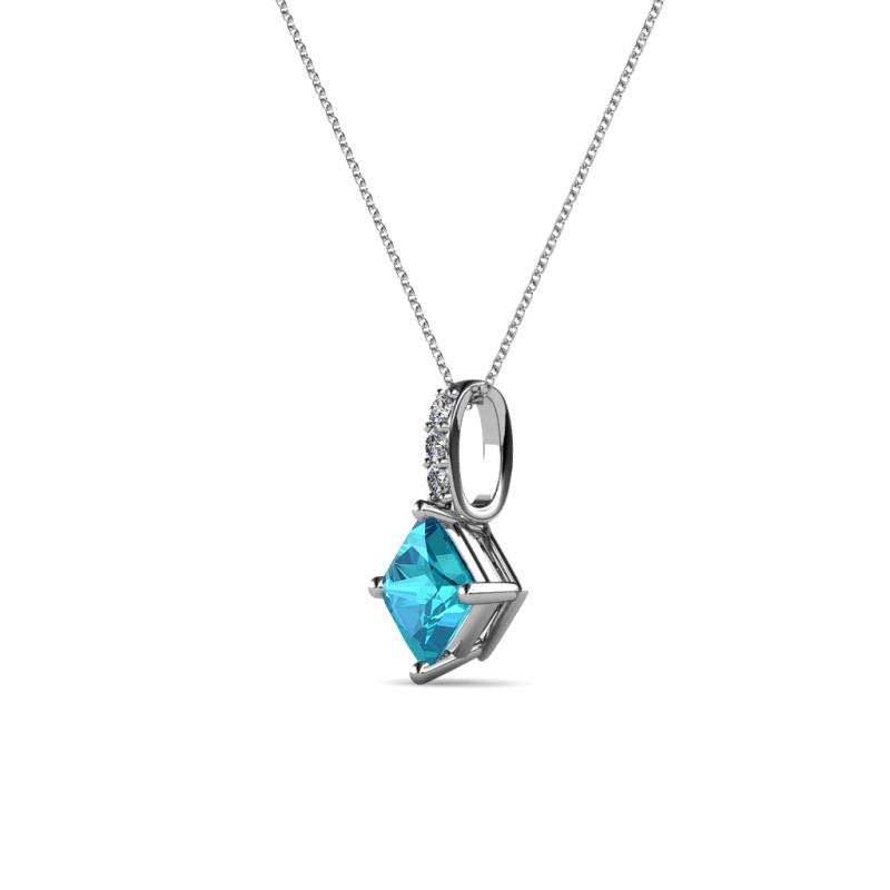 Princes Cut (5.5 mm) London Blue Topaz and Diamond Womens Pendant Necklace 0.90 ctw 14K White Gold.Included 18 Inches 14K White Gold Chain More Details ...