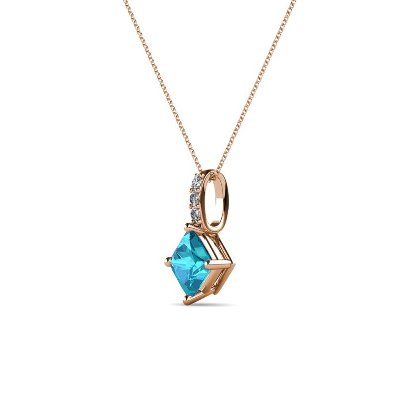 Princes Cut (5.5 mm) London Blue Topaz and Diamond Womens Pendant Necklace 0.90 ctw 14K Rose Gold.Included 18 Inches 14K Rose Gold Chain More Details ...