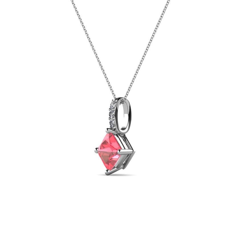 Princes Cut (5.5 mm) Pink Tourmaline and Diamond Womens Pendant Necklace 0.95 ctw 10K White Gold.Included 18 Inches 10K White Gold Chain More Details ...