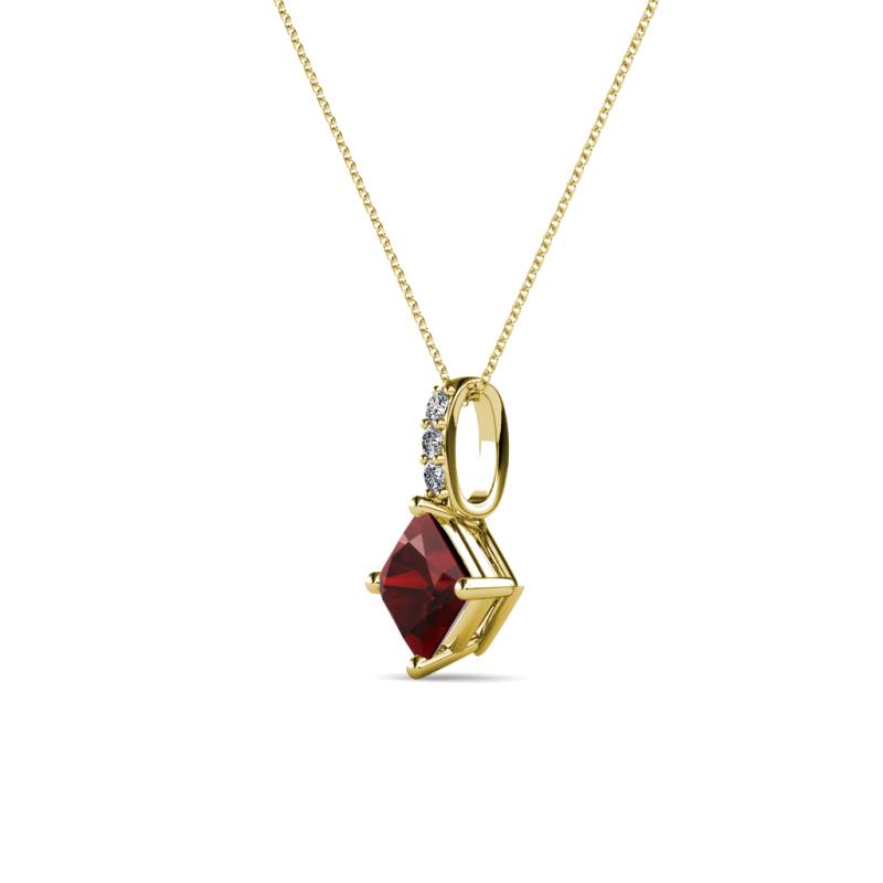 Princes Cut (5.5 mm) Red Garnet and Diamond Womens Pendant Necklace 1.00 ctw 14K Yellow Gold.Included 18 Inches 14K Yellow Gold Chain More Details ...
