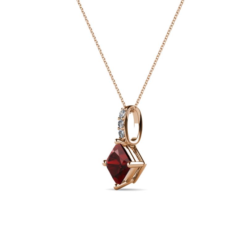 Princes Cut (5.5 mm) Red Garnet and Diamond Womens Pendant Necklace 1.00 ctw 14K Rose Gold.Included 18 Inches 14K Rose Gold Chain More Details ...