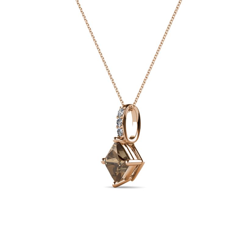 Princes Cut (5.5 mm) Smoky Quartz and Diamond Womens Pendant Necklace 0.90 ctw 14K Rose Gold.Included 18 Inches 14K Rose Gold Chain More Details ...