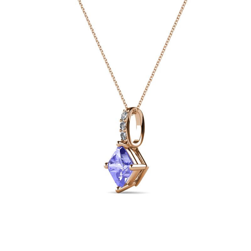 Princes Cut (5.5 mm) Tanzanite and Diamond Womens Pendant Necklace 1.00 ctw 14K Rose Gold.Included 18 Inches 14K Rose Gold Chain More Details ...