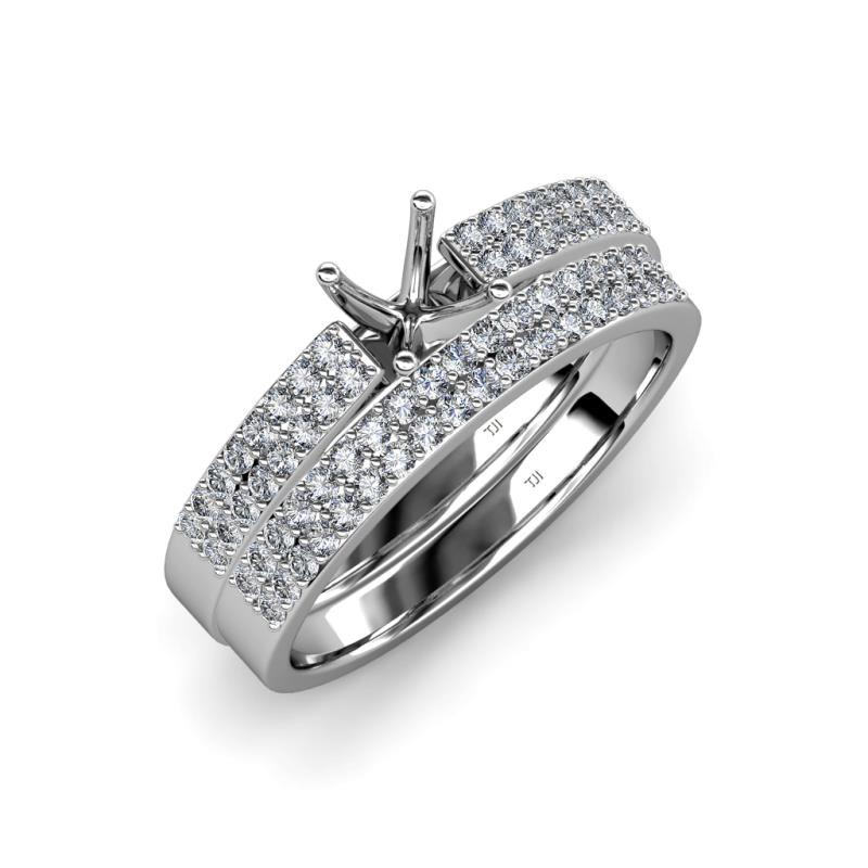 Diamond Four Prong Semi Mount Double Row Engagement Ring Setting & Matching Diamond Band 0.70 ctw 18K White Gold More Details ...