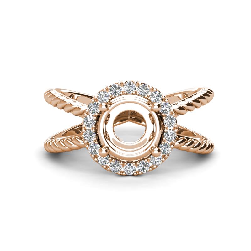 Semi Mount Womens Twisted Rope Cross Split Shank Halo Engagement Ring Setting with side Round Diamond 0.36 ctw 14K Rose Gold. More Details ...