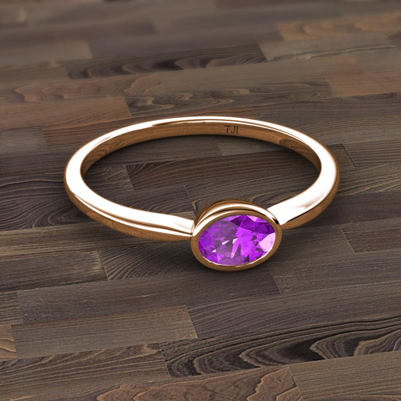 Oval Cut (7x5 mm) Amethyst 0.90 ct Womens East West Solitaire Engagement Ring 10K Rose Gold More Details ...