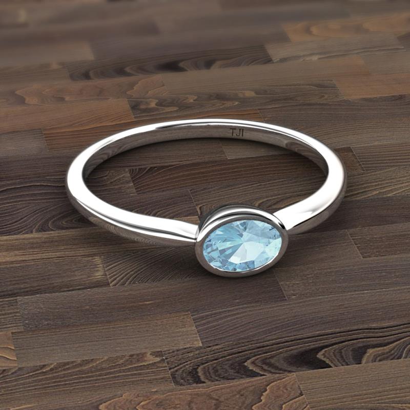 A fresh take on the classic solitaire ring, this contemporary ring has Oval cut Aquamarine horizontally set which makes it stunning.