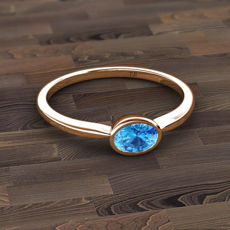 A fresh take on the classic solitaire ring, this contemporary ring has Oval cut Blue Topaz horizontally set which makes it stunning.