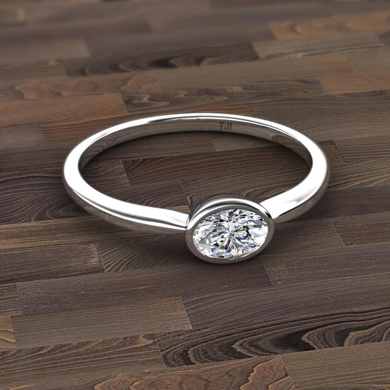 A fresh take on the classic solitaire ring, this contemporary ring has Oval cut Diamond horizontally set which makes it stunning.
