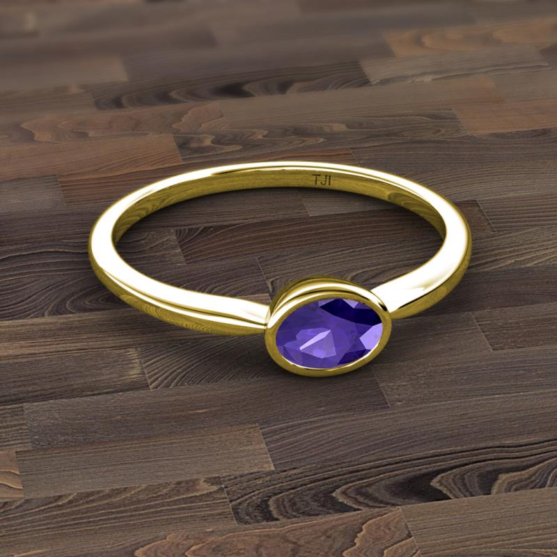 A fresh take on the classic solitaire ring, this contemporary ring has Oval cut Iolite horizontally set which makes it stunning.